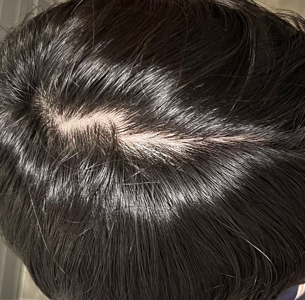 현재 정수리가 얇아보이거나 휑해보이지 않습니다.