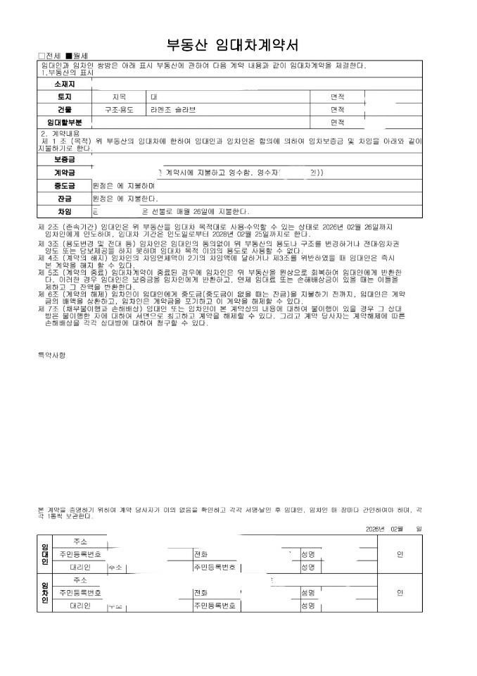 (첨부: 계약서 사진 1장 / 개인정보는 일부 가렸습니다)
