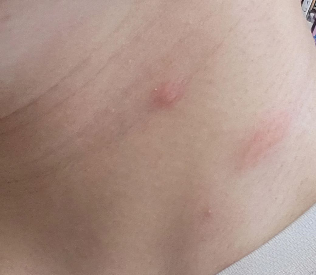 따끔하면서 쏘인 느낌이었고 벌레는 모기보다는 컸고 날개 달린 큰 개미 같았어요.