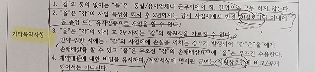 2-또한 계약기간 내에 학원 학생을 따로 지도했을경우 계약서내에 문제가 되나요? 학생한테 돈 받았을때, 안받았을때가 다를까요?