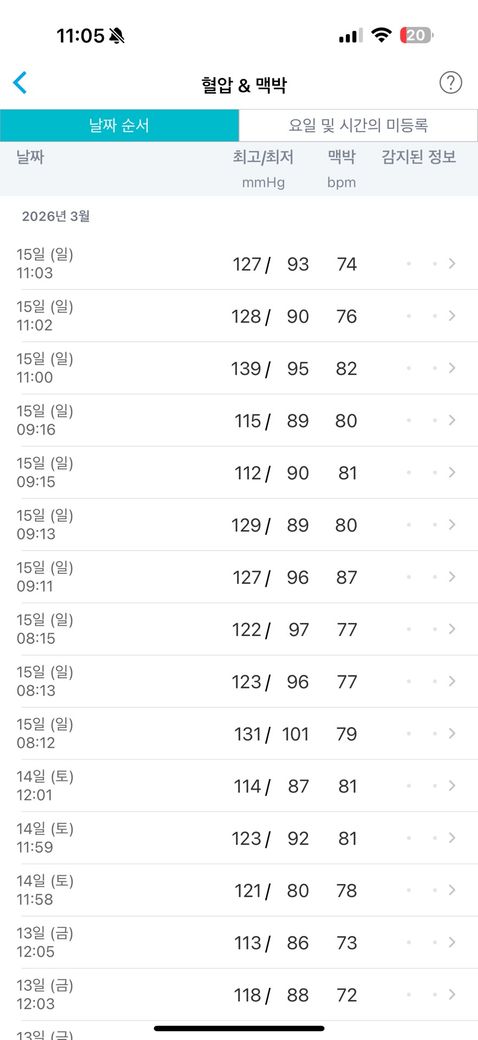 혈압은 한 번 측정할 때 1-2분 간격으로 3번 정도 측정을 하시고 2번째, 3번째 측정값을 평균을 고려하시면 되겠습니다.