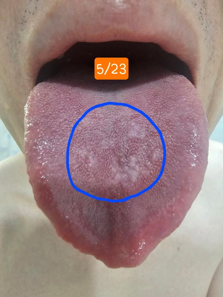 혀 중심부에 흰색이 보여서 걱정하고 있습니다.