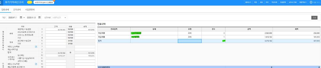 1. 다음과 같이 매출세금계산서 발행건이 4건인데, 그럼 경감세액란에서