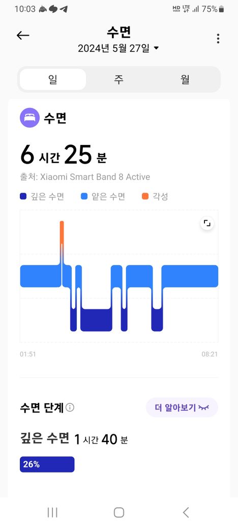잠 잘려고 누운건 12시30분이고 일어난 시간은 8시인데 측정은 저렇게 되었습니다