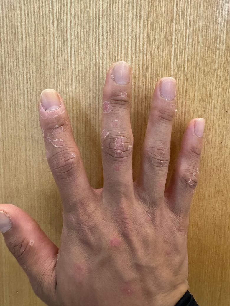 건선으로인해 손가락 발등이 홍반이있는부분이 벗겨지면서 너덜 거리는 하얀부분이 옆으로 계속 넓어지는데요