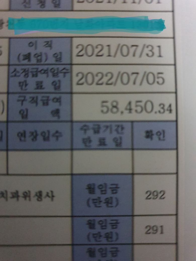 근무시간은 07시~16시 모든 근무시간은 8시간 이상입니다.(20년10월14일~21년10월31까지는 산재기간 이었습니다)세전 급여는 2,538,460 입니다.