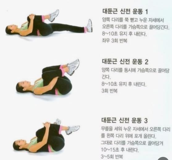 2. 브릿지나 스쿼트와 강은 기초적인 운동을 통해서 주변 근육을 강화해보셔도 도움이 됩니다.