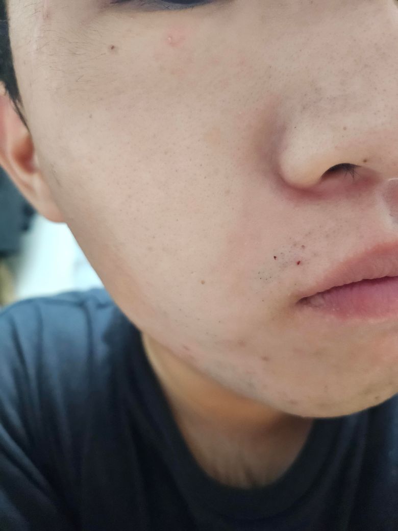 3. 면도를 하다가 여드름이 있는곳이 베인건지 피가 살짝 좀 나더라고요... 지금은 아침에 피가 나다가 이제는 안나고 사진처럼 그런데 괜찮을까요?