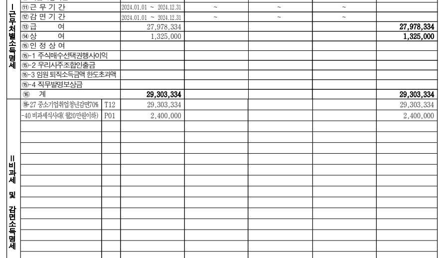 이중취업근로자 원천징수영수증을 제출하려 보니 아래와 같이 내역이 나오더군요