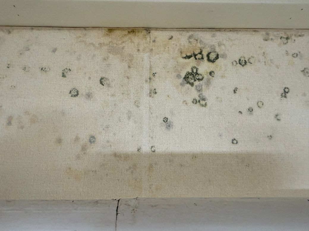 천장이나 벽지같은데.. 검은곰팡이로 보이네요