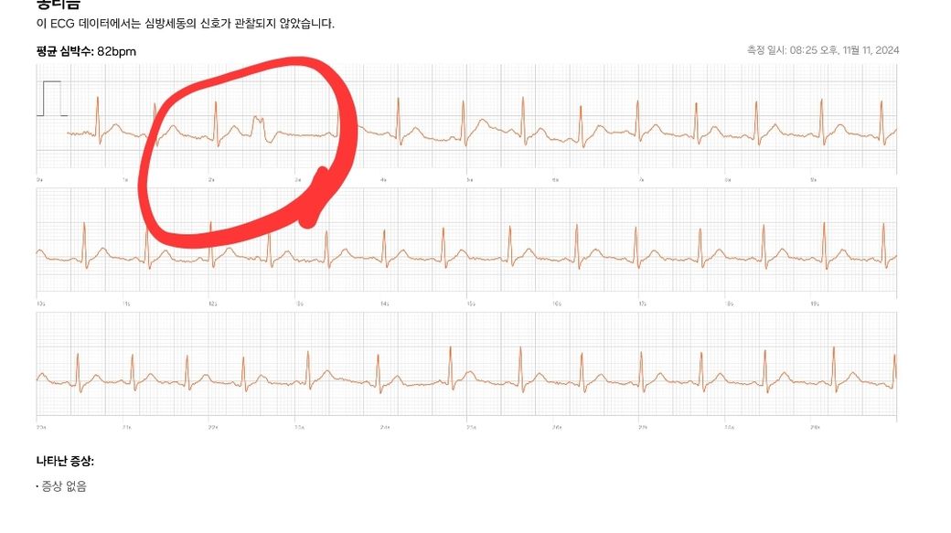 안녕하세요. 심장이 쿵 떨어지고 울컥거리는 느낌이 있어서 갤럭시워치로 심전도 측정했더니 그래프 모양이 좀 다른 부분이 있어서 문의드립니다.