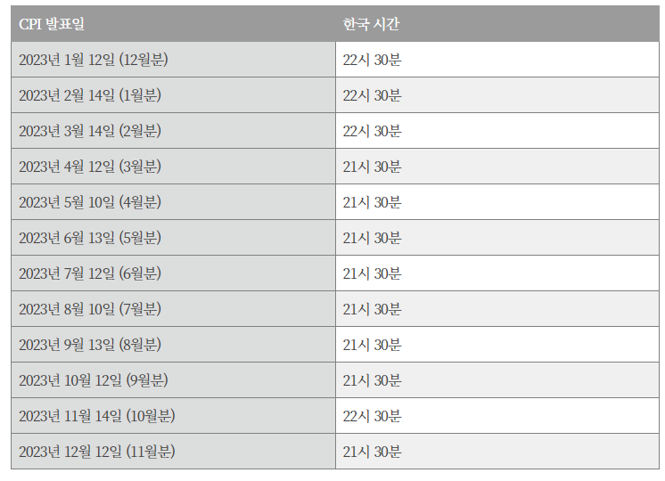 언제인지 cpi??지수 발표일도 정리해서 부탁드립니다.