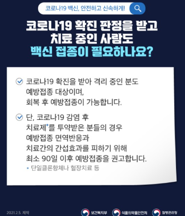 코로나에 걸렸더라도 원칙적으로는 예방접종을 맞는게 맞습니다.