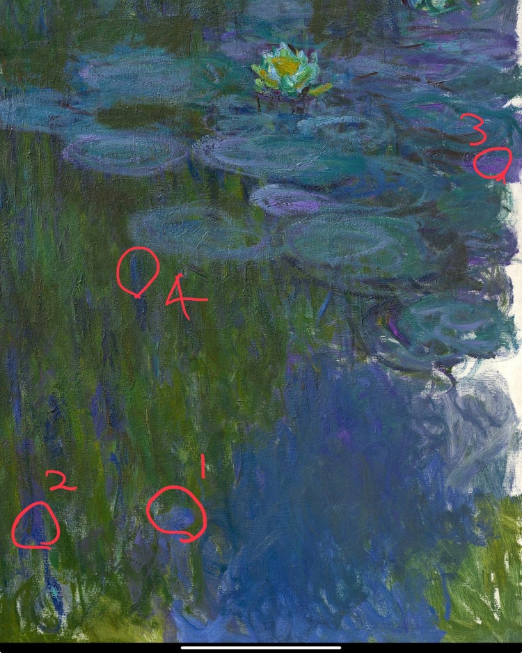 이때 브라운과 블루를 적절히 섞어주면 자연스러운 그림자 느낌을 낼 수 있습니다. 모네의 그림에서는 빛의 변화와 반사를 잘 표현하기 위해, 색상 대비와 빛의 조화를 중요하게 다룹니다. 따라서 투명한 레이어를 덧칠하면서 색을 조절하는 방식도 좋은 방법입니다. 모네의 감각적인 색채 그대로를 흉내낼 수는 없겠지만 열심히 연습해보시다보면 본인만의 색채를 찾으실수가 있으실 것입니다.
