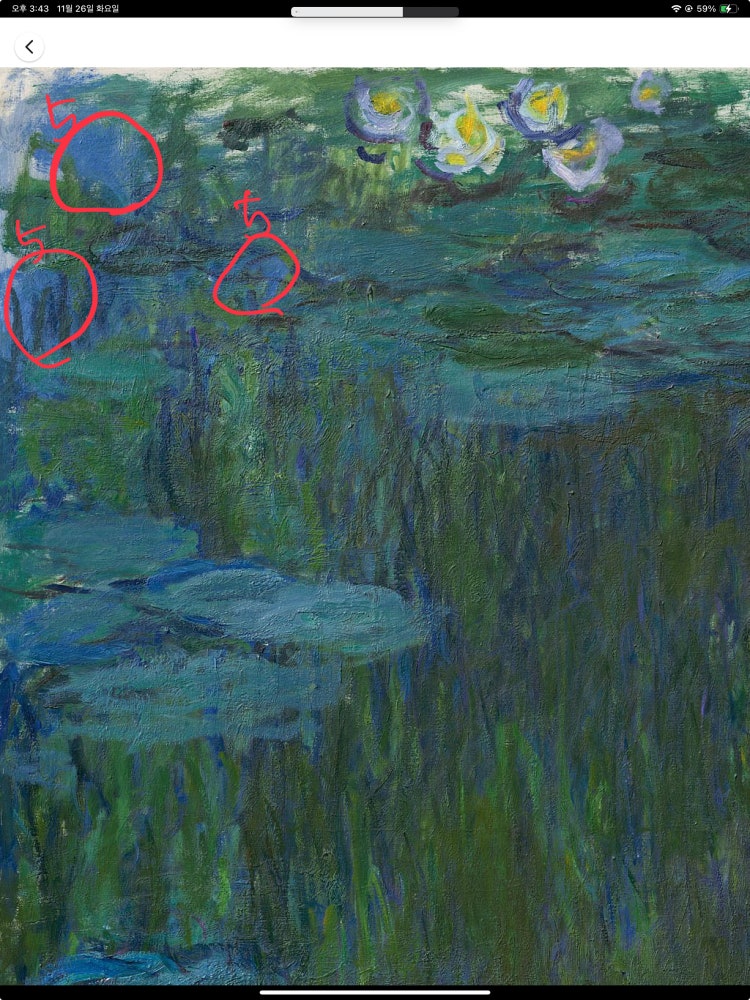 모네가 그린 연못의 연꽃잎들을 보여주는 그림인데요