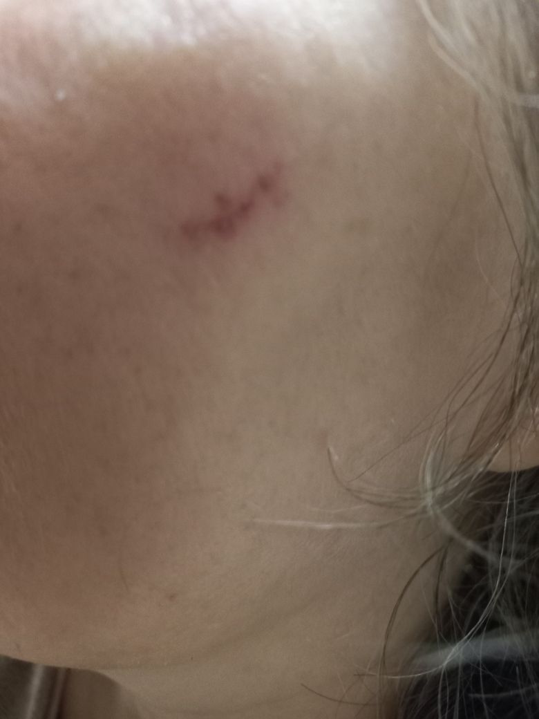 어머니의 볼에 사진과 같은 붉은 자국이 생겼습니다.