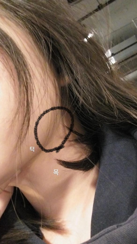 제목 보시다시피 목과 턱 사이 사진에 동그라미친부분 누르면 아파요 오른쪽이에요