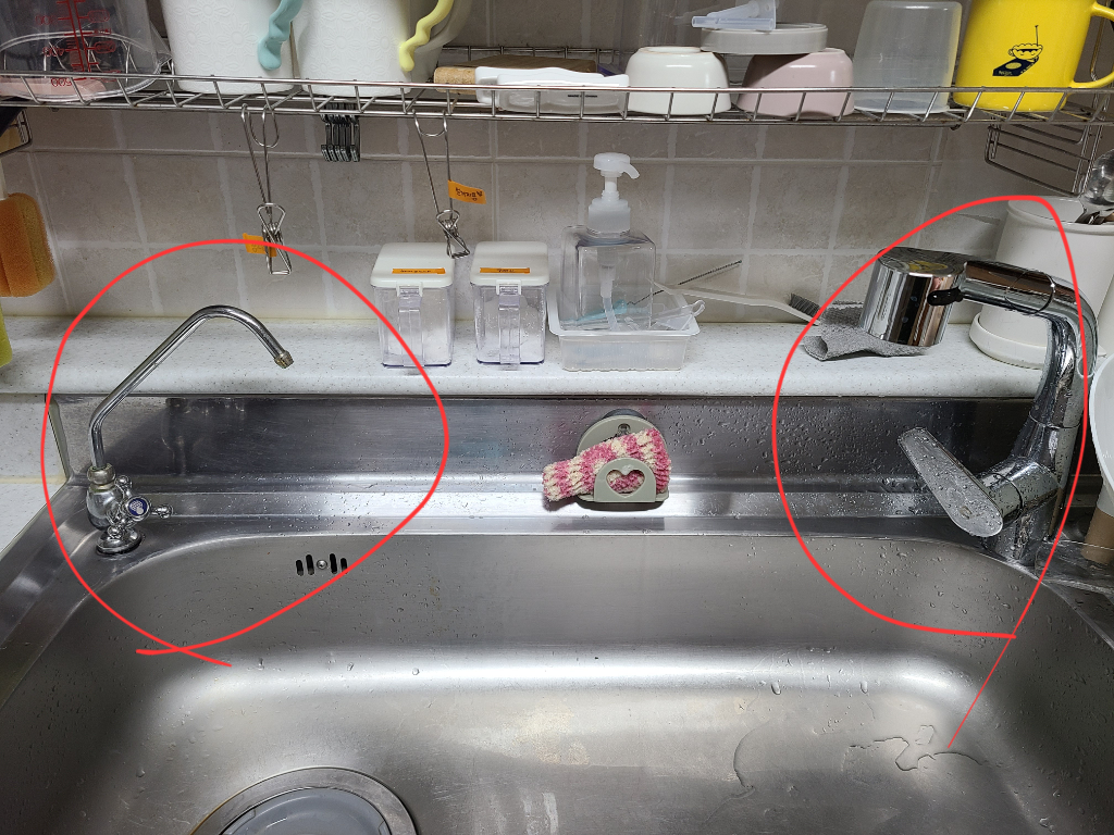 아무래도 타공 규격이 다르기 때문에 좌, 우를 바꿔서 진행하려면 타공 사이즈를 맞춰야 하는데요. 이럴 경우에 한 쪽은 타공 사이즈를 넓혀야 하고, 다른 편은 상판 복원을 통해서 구멍을 막은 이후에 규격에 맞는 구멍을 다시 만들어야 합니다.
