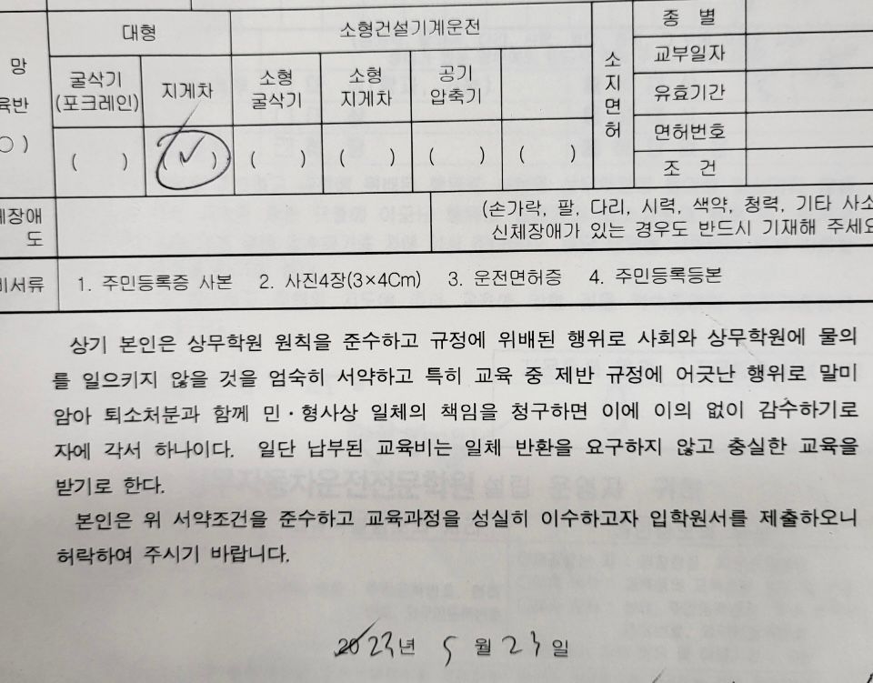 자동차운전학원 계약서 내용들은 효력이 있나요?