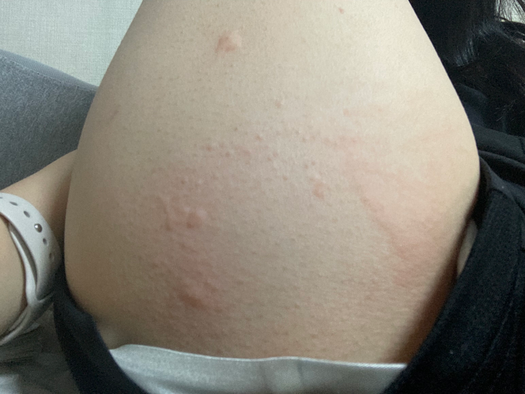 알레르기에 의한 두드러기 가능성이 높아 보입니다.