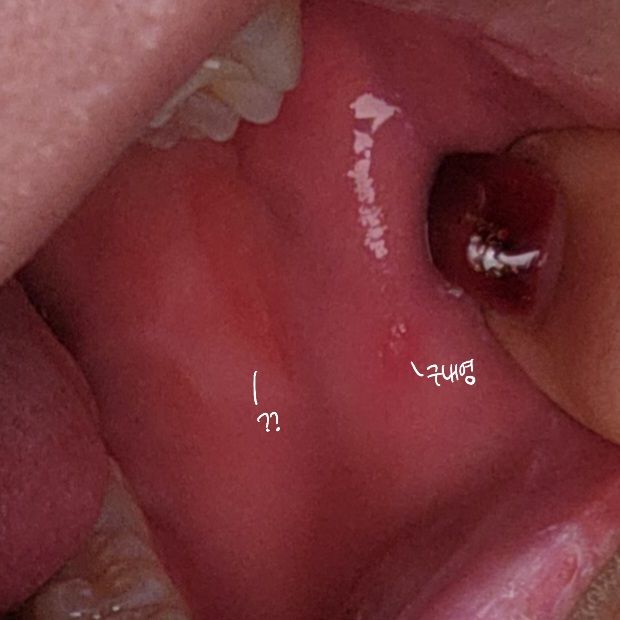 크기가 작은 것도 아닌 것 같고 근처에 구내염같이 작고 하얀 점 하나도 보이구요