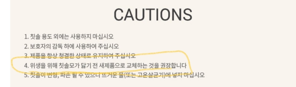 칫솔 사용설명서에도 칫솔모(실리콘)가 닳기전에 칫솔을 바꿔주라고 해서