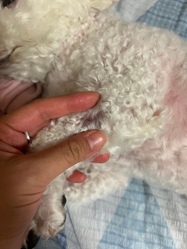 질문 추가합니다ㅠㅠ 몸을 살피던 중 생식기 부분에 갈색딱지가 털에 묻은게 보이는데 혈뇨가 있던걸까요? 상처는 없습니다