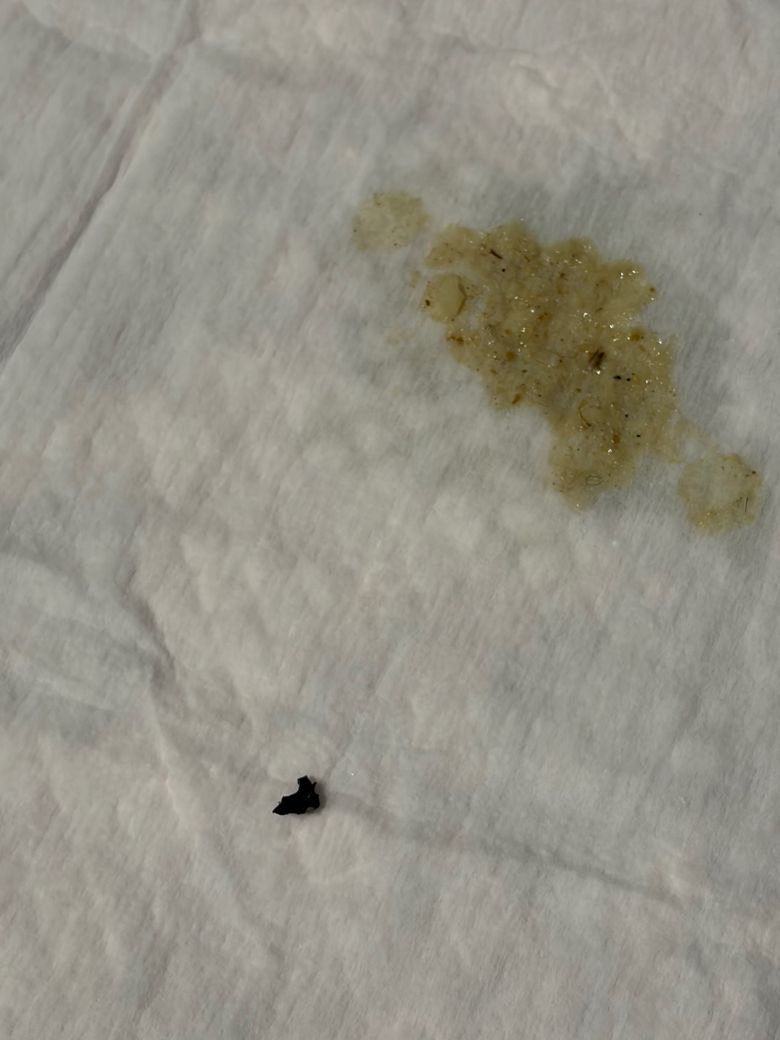 3번째 토는 사진에 나온 토 입니다 검정샏 플라스틱이랑 뭔지모를 이쑤시개로 찌르면 꽂힐정도의 말랑한 흰색이물질이 나왔습니다.
