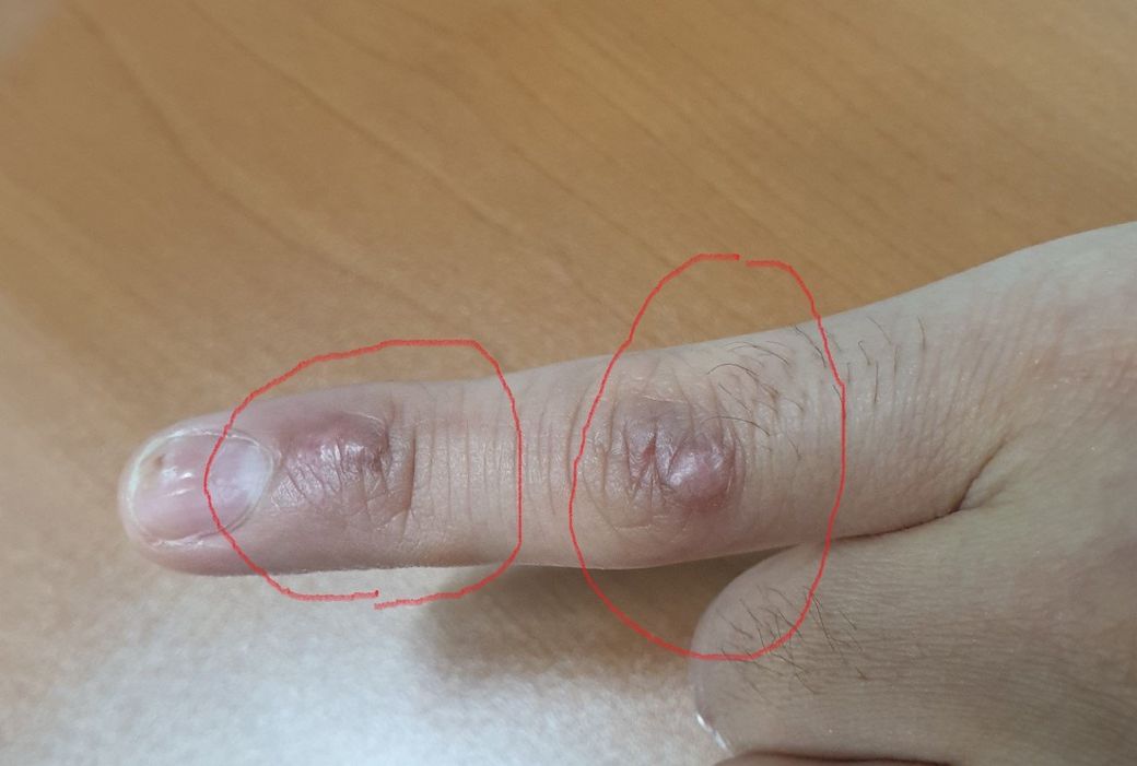 다만 타박에 의한 손가락 손상이 있을 수도 있고, 피부병변이 연조직염으로 발전했을 가능성도 있기 때문에 정형외과에 가보시는 것을 추천드립니다.