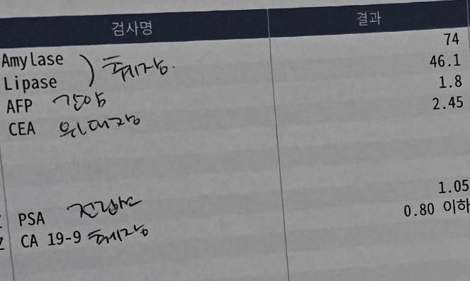 2달전 내과에서 췌장 혈액검사로 아밀라아제, 리파아제, CA19-9 검사를 했습니다.