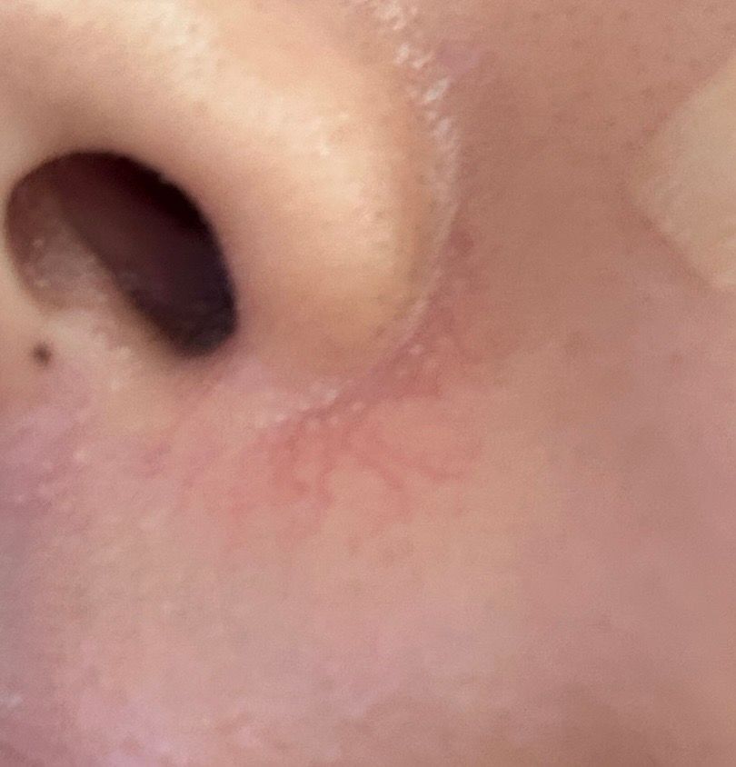 모세혈관 확장증은 모세혈관이 확장되어 피부 표면에 붉은색이나 보라색 선이나 점처럼 보이는 상태를 말합니다. 주로 얼굴, 특히 볼과 코 옆 부위에서 흔히 발생하며, 피부가 얇고 민감한 부위에서 자주 나타날 수 있습니다. 질문자님이 겪고 있는 증상(붉은 점, 실핏줄 등이 보이는 증상)은 모세혈관 확장증과 비슷할 가능성이 있어 보여요