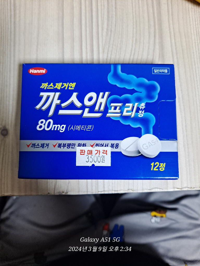 1. 까스앤 프리를 1회 2정씩 하루 2번 나누어 드셔도 문제 없습니다. 용량에 문제 없습니다.