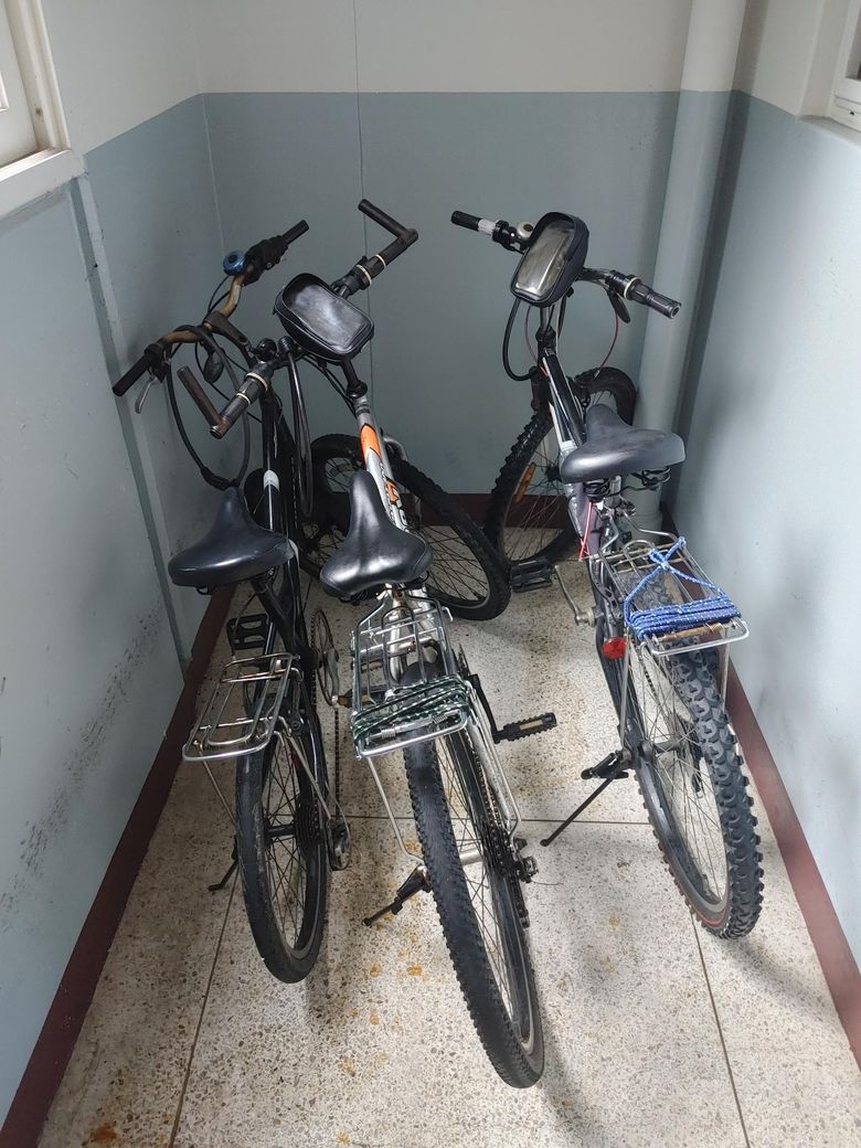 저는 20대 남자 173cm 87kg. 엄마는 50대 여자 155cm 53kg. 아빠는 50대 남자 169cm 72kg. 입니다. 사진에 나온 자전거는 왼 엄마, 중 저, 오 아빠 의 것입니다.