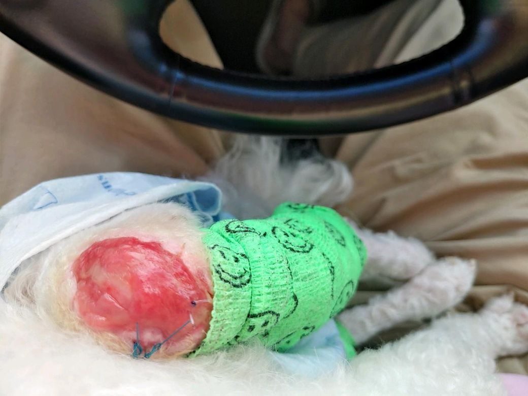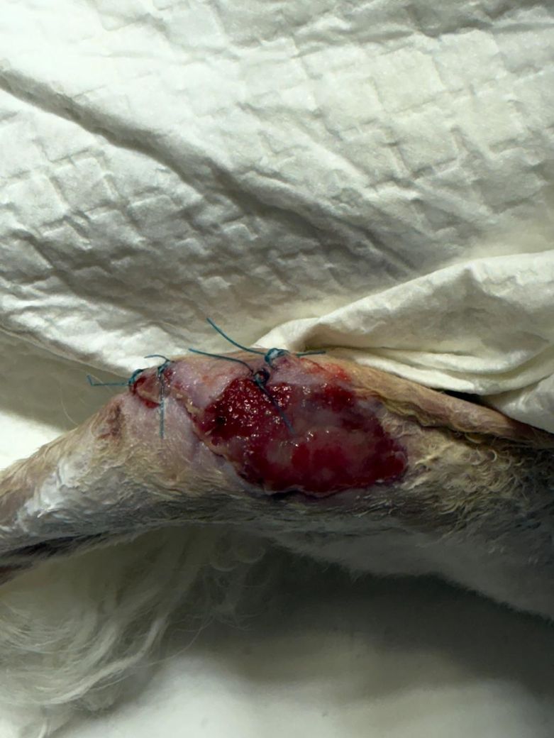 슬개골탈구 수술 2주입원 후 퇴원 퇴원할때 살상처가 덜 아물었다고 들었습니다 그래도 기브스 한것만 믿고 데려온 다음날. 할머니가 콧바람쐐어주고 들어와서 넥카라 잠시벗기고. 사료를준다음. 할머니는. 집안에서 다른일을 하고 계셨다고 합니다. 10분 20분 정도 지나서 봤다고 하셨는데 기브스는 빠져있고 상처부위가 보였는데. 강아지가 할고 있었다고 합니다. 상처부위가 넘심해보여 가까운병원을 갔더니 빨리봉합해야한다고 하고 온갖 감염에 대한 설명을 들으셨다고 합니다 하지만 우리가 수술한 의사도 아니고 하룻밤사이에. 큰일이 생기지않기를 바라며. 수술한 병원에 갔습니다. 다시입원해야한다했고 봉합하지 않아도 된다해서 다행이다 싶지만 보기에 넘넘심해서. 문의드립니다