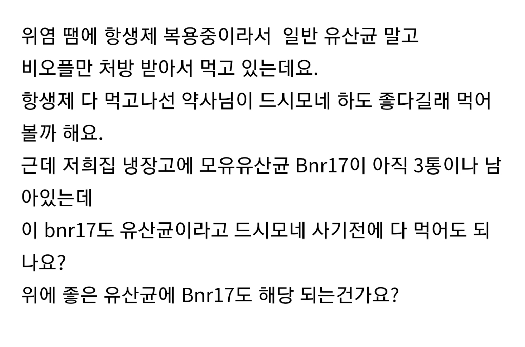 bnr17드시면서 드시모네와 같은 유산균 추가로 드셔도 무방합니다.