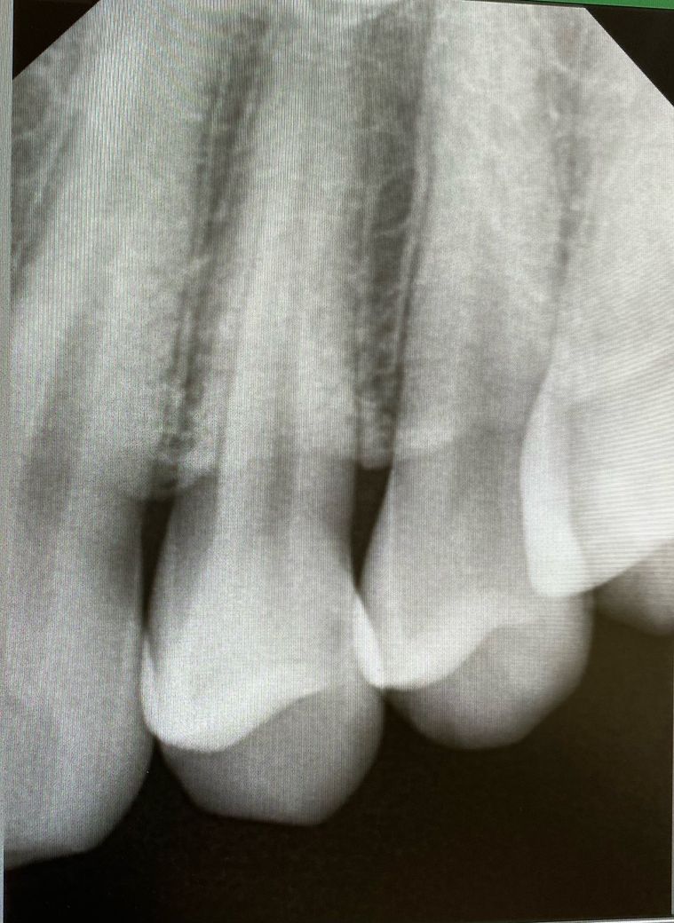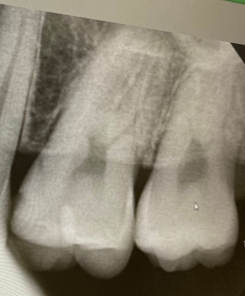 왼쪽 위 2번째 어금니 레진속 2차 충치로