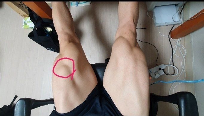 당시 참을만한 통증이어서 병원을 가지 않았고, 대퇴직근 하단부가 패이고 패인 부분만큼 근육이 위로 올라가 몽우리가 잡혔습니다. 금방 돌아올것으로 자가진단하여 병원에 가지 않았습니다.