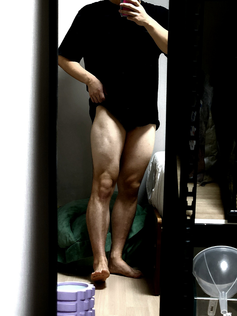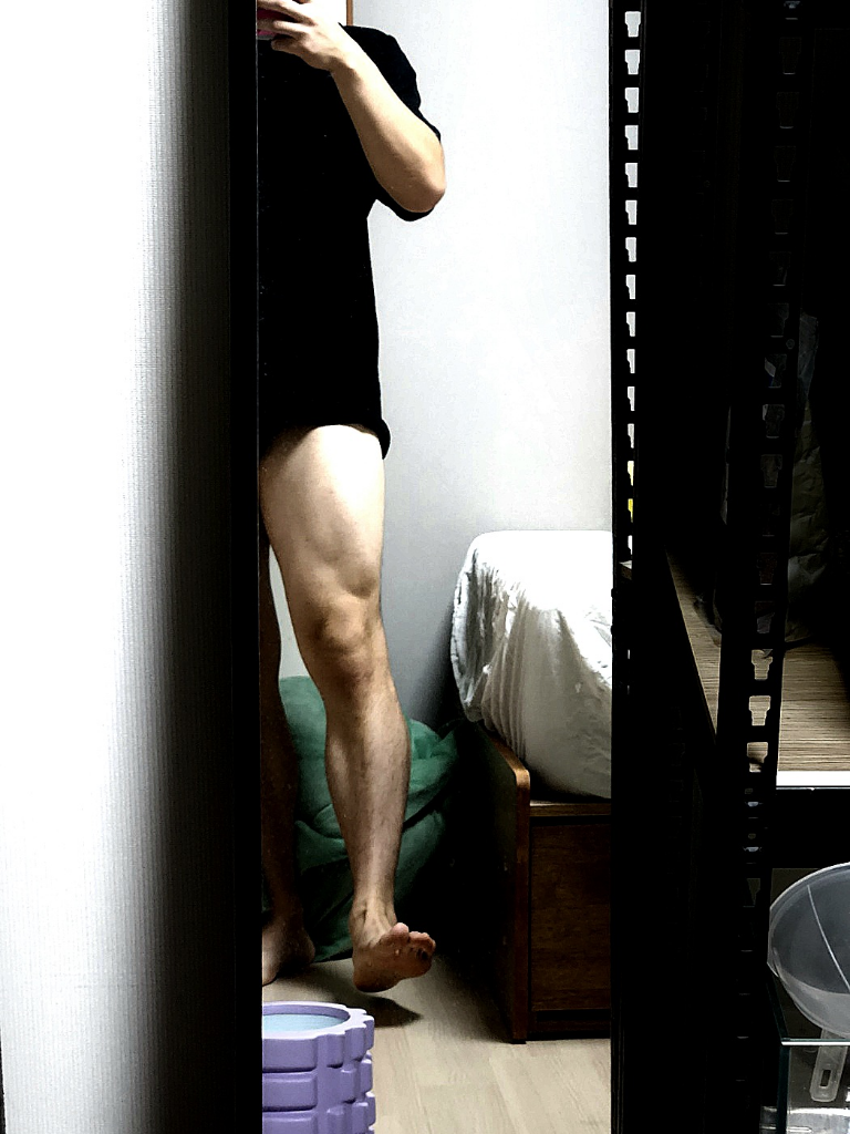 약 한달전쯤 행잉레그레이즈를 하며 직근에 자극을 줬었는데 걸어가다가 왼쪽허벅지에서 고무줄이 튕기는 느낌이 나더라구요. 집에와서 확인해보니 사진과 같이 양쪽모양이 다르더군요.. 전혀 아프진않은데