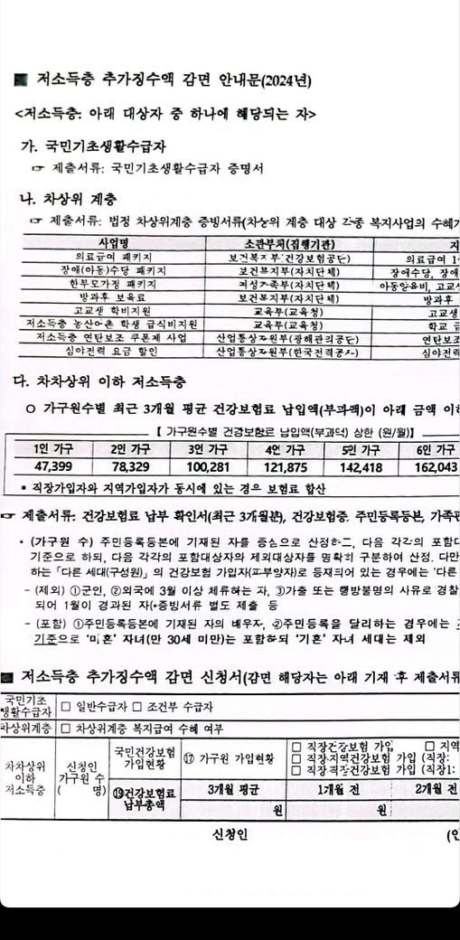 저는 1.6만원 , 할머니도 그정도 내는데 이정도면 2인가구(78,329원) 기준 저소득층 으로 징수액 감면해택 받을 수 있을까요 ??..