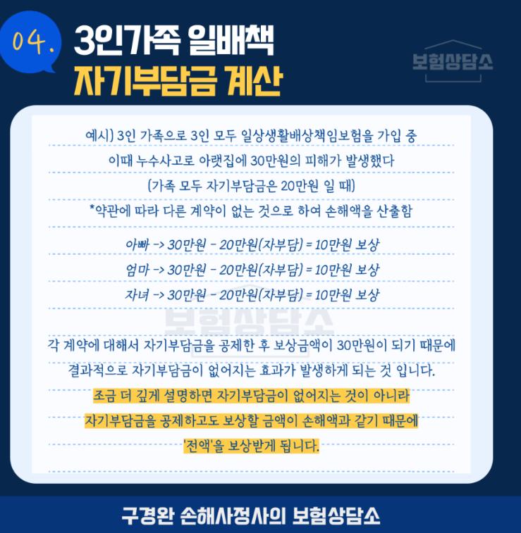 이때 가족 구성원들의 일배책을 중복으로 청구하여 본인부담금을 해소하실 수 있습니다.ㄴ출처:구경완 손해사정사의 보험상담소