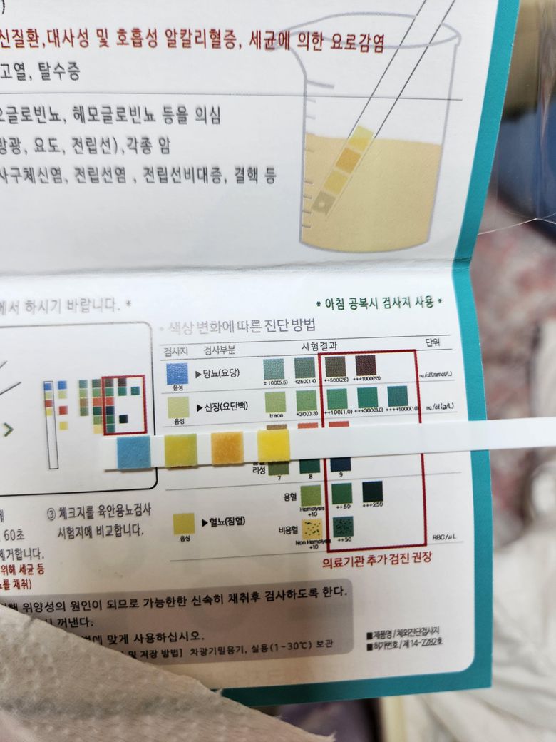 안녕하세요 병원은 예약했는데요 가기전에 집에서 소변스틱으로 해봤습니다. 물론 정확한 결과는 병원서 하는거겠지만 한번 의견을 듣고 싶습니다