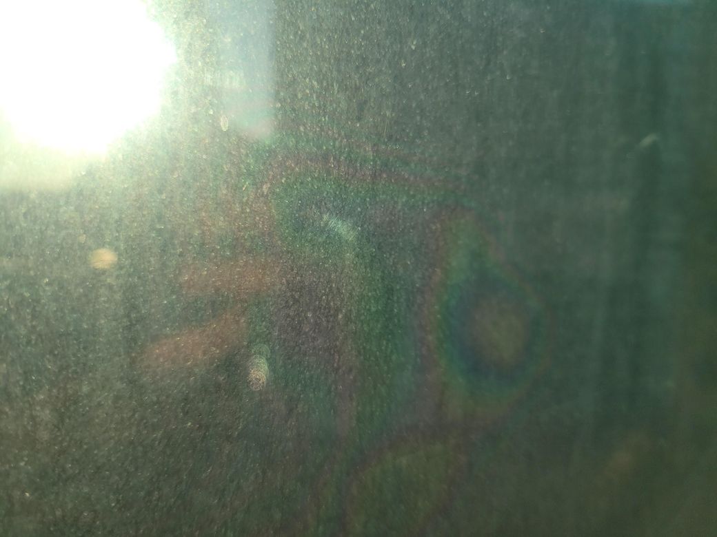 뒷쪽 유리도 닦아보셨나요? 유리창 업체를 불러서 먼저 닦아보시는 것을 추천드립니다. 갈라지거나 파손이 되지않았다면 교체는 하지 않으셨으면 합니다.