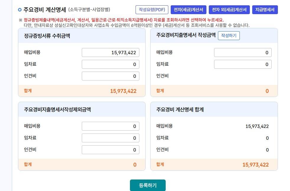 정규증빙서류>매입비용에 합산해서 넣으면 되나요