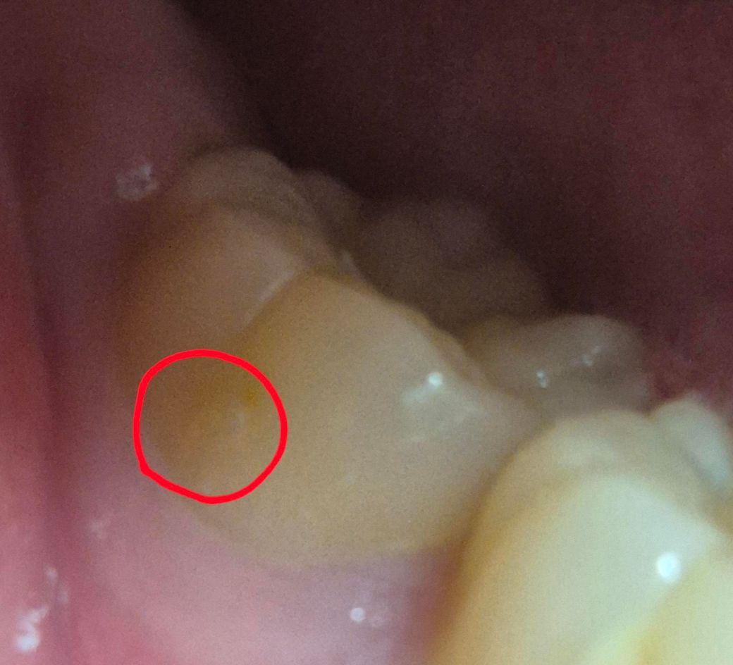 제2 큰 어금니 옆면에 금이 간 것 같습니다