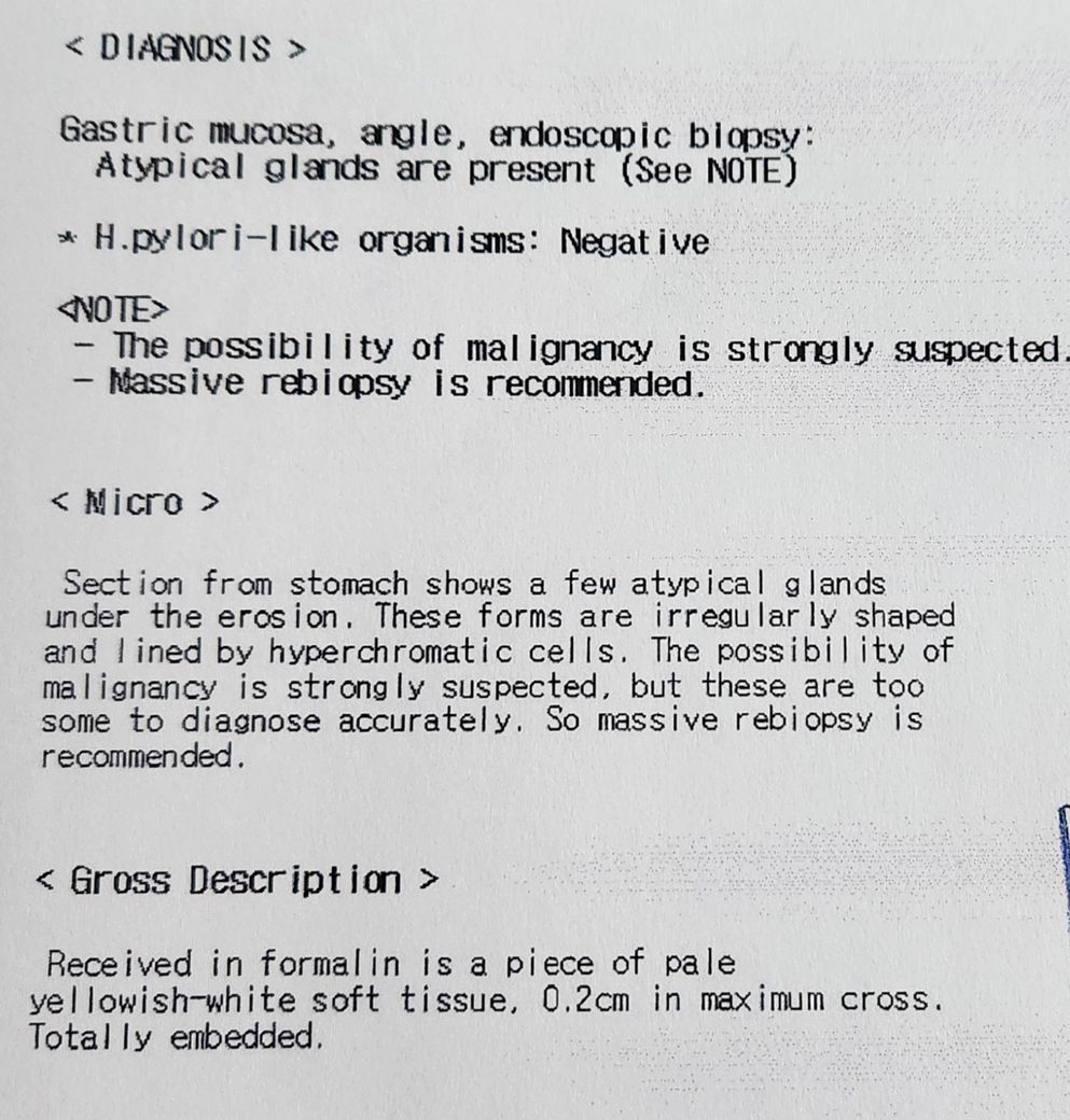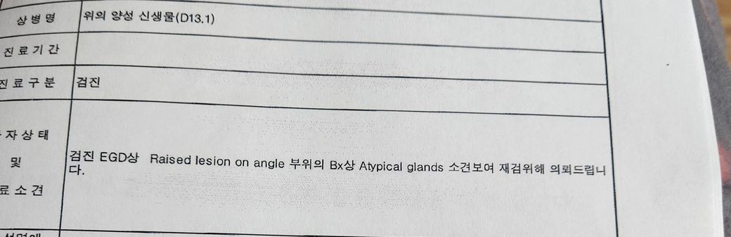 결과지에 좀 봐주세요? 건강검진조직검사