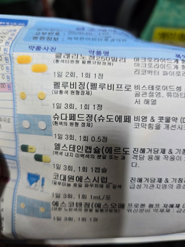 감기약 처방 중 클래리 항생제가 피임약(마이보라)에 영향을 줄 수 있습니다