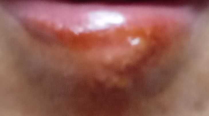 두번째 사진이 포진이 입술 밑에 더 생긴 사진입니다.