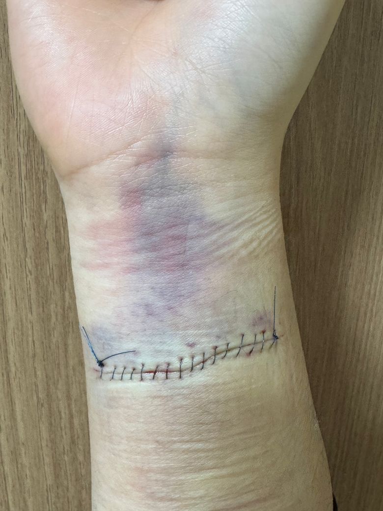 손목 상처 봉합 후에 혈관에 멍이 들었는데 괜찮은 건가요?