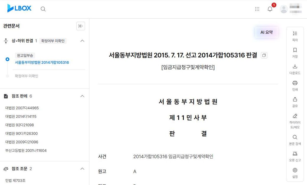 제가 궁금한 판결은 서울동부지방법원 2015. 7. 17. 선고 2014가합105316 판결인데 이 판결이 어디까지 갔는지, 그리고 그 사건번호는 무엇인지 알 수 있는 방법이 있나요?