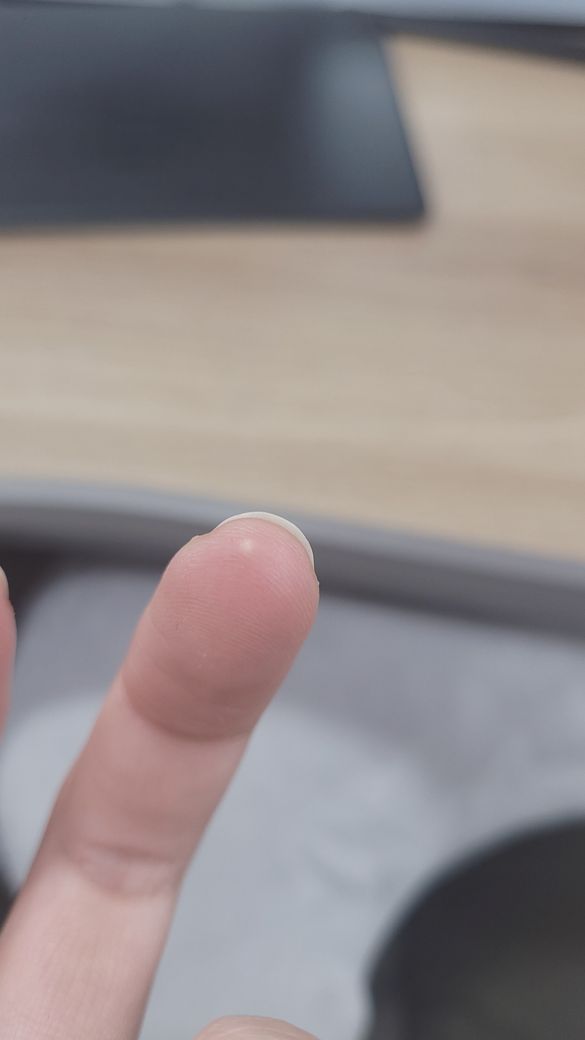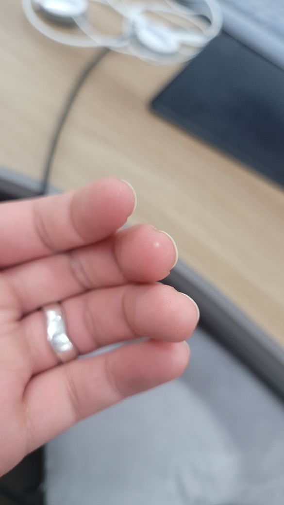 처음엔 투명한듯 물집인 줄 알았는데 하얗고 눌러보면 안에 딱딱하고 동그랗게 만져져요